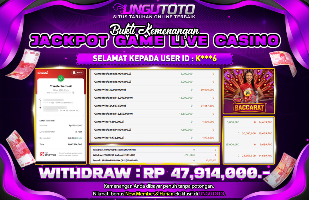 Selamat Kepada Member UNGUTOTO K⭑⭑�***��⭑6 Telah Jackpot Di MEGA BACCARAT