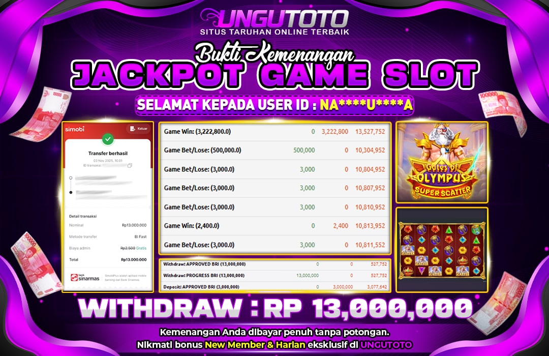 Bergabunglah dengan UNGUTOTO hanya dengan deposit minimal 5.000 rupiah. Kami menyediakan berbagai metode pembayaran seperti transfer bank, e-wallet, dan QRIS, sehingga Anda bisa melakukan transaksi dengan mudah. Proses penarikan juga sangat cepat, dengan minimal withdraw hanya 50.000 rupiah, tanpa biaya tambahan.