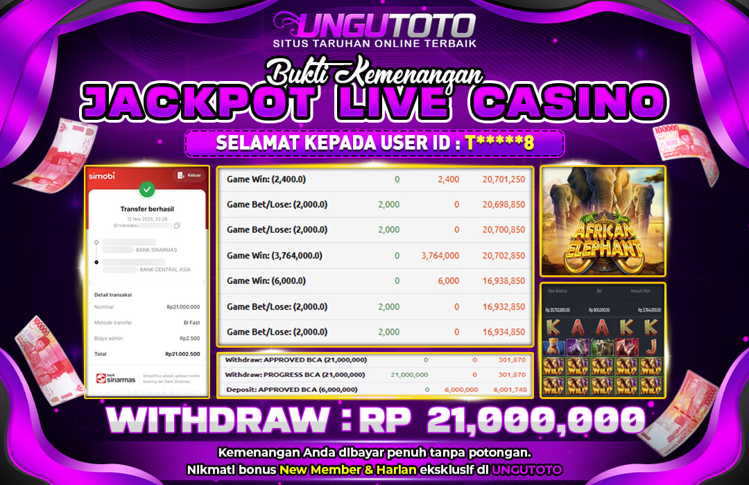 Bergabunglah dengan UNGUTOTO hanya dengan deposit minimal 5.000 rupiah. Kami menyediakan berbagai metode pembayaran seperti transfer bank, e-wallet, dan QRIS, sehingga Anda bisa melakukan transaksi dengan mudah. Proses penarikan juga sangat cepat, dengan minimal withdraw hanya 50.000 rupiah, tanpa biaya tambahan.