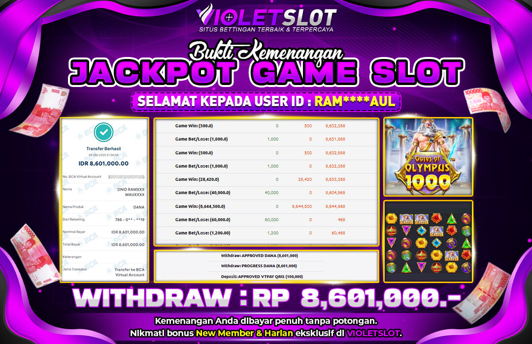Selamat Kepada Member UNGUTOTO RAM*****AUL Telah Jackpot Di GATES OF OLYMPUS 1000