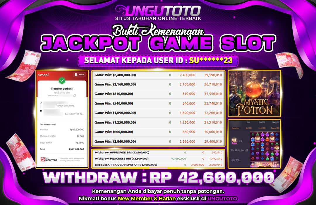 Bergabunglah dengan UNGUTOTO hanya dengan deposit minimal 5.000 rupiah. Kami menyediakan berbagai metode pembayaran seperti transfer bank, e-wallet, dan QRIS, sehingga Anda bisa melakukan transaksi dengan mudah. Proses penarikan juga sangat cepat, dengan minimal withdraw hanya 50.000 rupiah, tanpa biaya tambahan.
