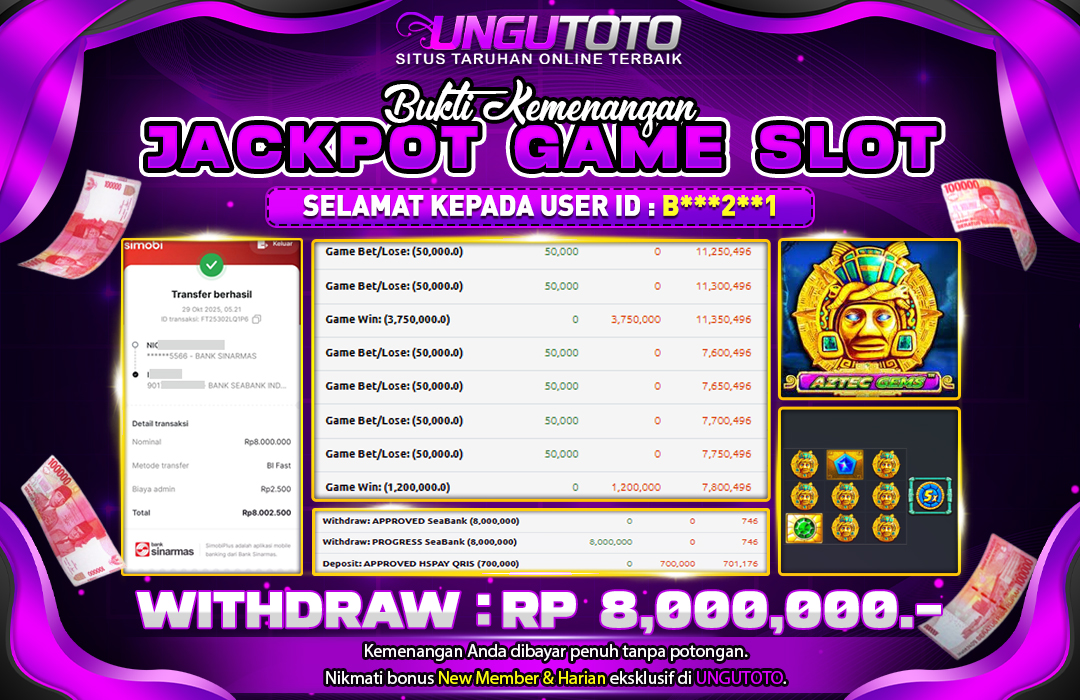 Bergabunglah dengan UNGUTOTO hanya dengan deposit minimal 5.000 rupiah. Kami menyediakan berbagai metode pembayaran seperti transfer bank, e-wallet, dan QRIS, sehingga Anda bisa melakukan transaksi dengan mudah. Proses penarikan juga sangat cepat, dengan minimal withdraw hanya 50.000 rupiah, tanpa biaya tambahan.