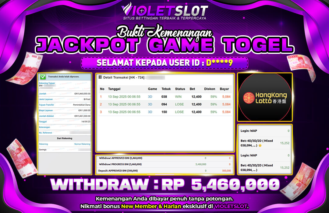 Selamat Kepada Member UNGUTOTO D****9 Telah Jackpot Di HONGKONG LOTTO