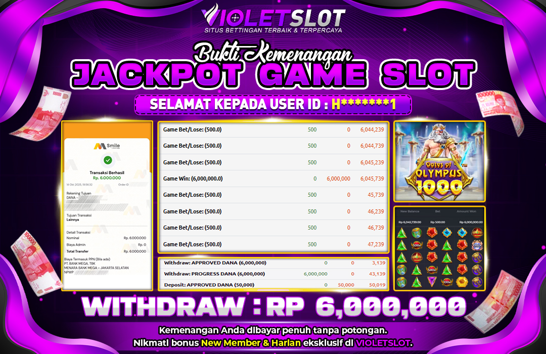 Selamat Kepada Member UNGUTOTO S⭑⭑⭑⭑⭑�***�⭑⭑⭑⭑⭑7 Telah Jackpot Di GATES OF OLYMPUS 1000