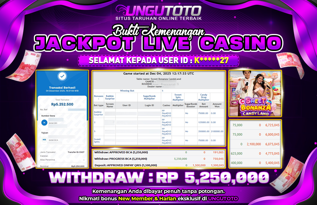 Selamat Kepada Member UNGUTOTO K*****7 Telah Jackpot Di SWEET BONANZA CANDYLAND
