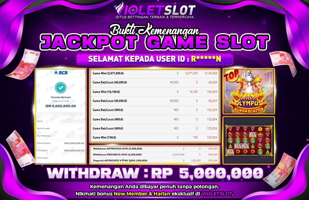Selamat Kepada Member UNGUTOTO R*****N Telah Jackpot Di GATES OF OLYMPUS SUPER SCATTER