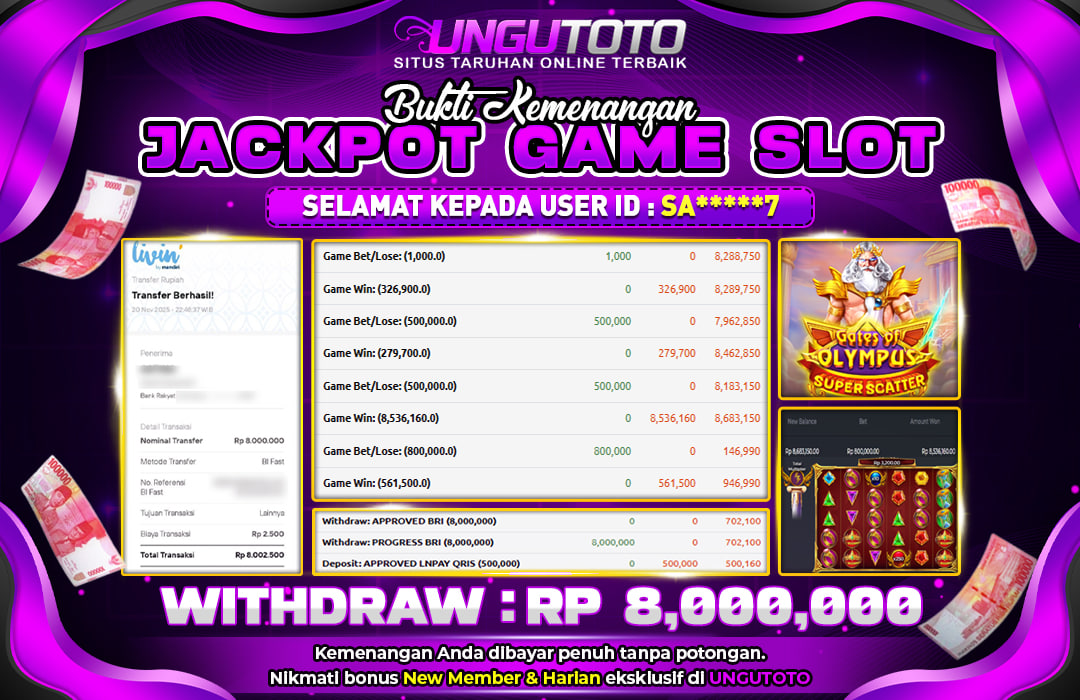 Bergabunglah dengan UNGUTOTO hanya dengan deposit minimal 5.000 rupiah. Kami menyediakan berbagai metode pembayaran seperti transfer bank, e-wallet, dan QRIS, sehingga Anda bisa melakukan transaksi dengan mudah. Proses penarikan juga sangat cepat, dengan minimal withdraw hanya 50.000 rupiah, tanpa biaya tambahan.