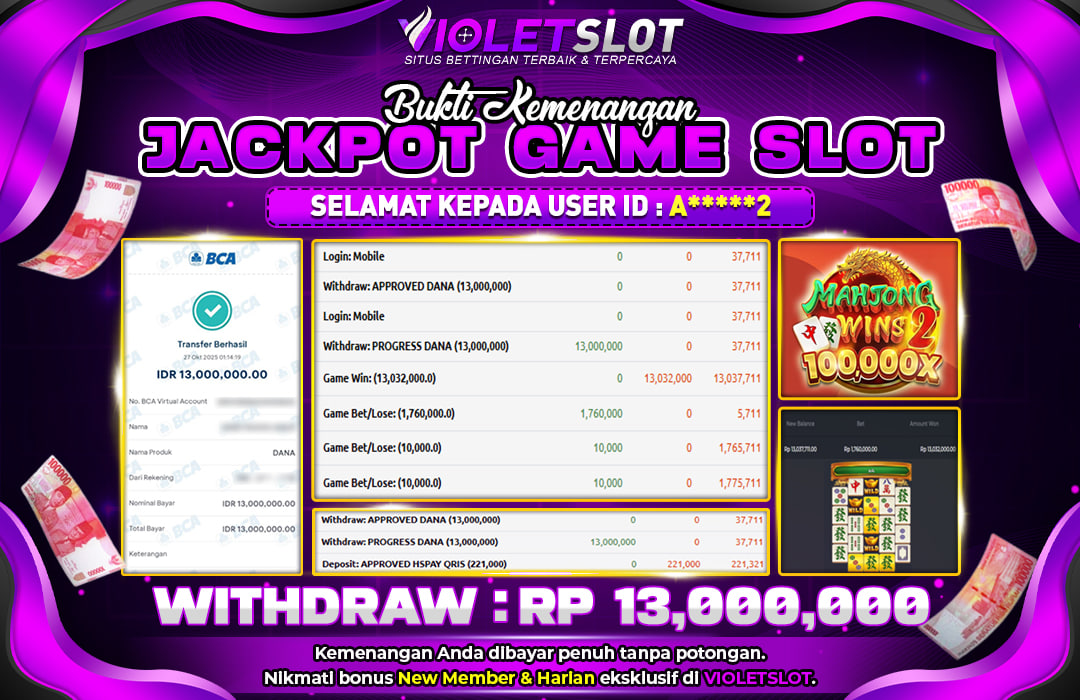 Selamat Kepada Member UNGUTOTO A⭑⭑�***��⭑2 Telah Jackpot Di MAHJONG WINS 2 100,000X