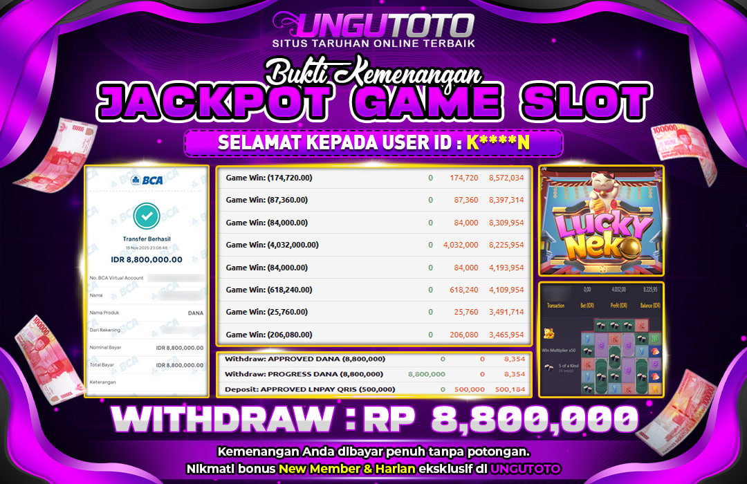 Selamat Kepada Member UNGUTOTO K⭑�***�⭑N Telah Jackpot Di LUCKY NEKO