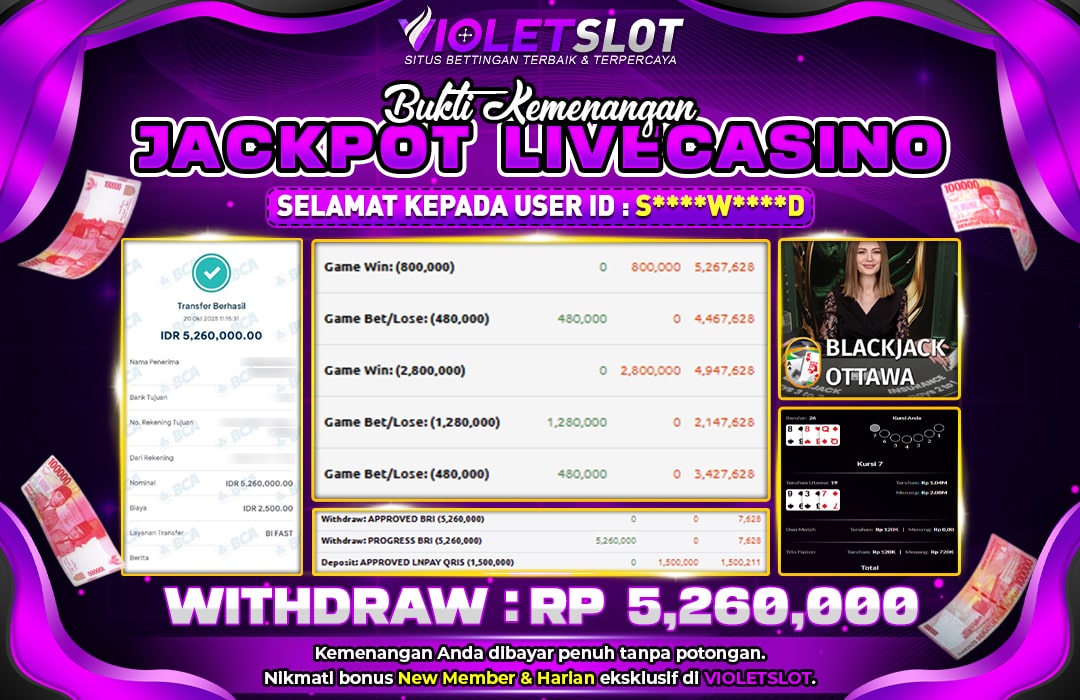 Selamat Kepada Member UNGUTOTO S*********D Telah Jackpot Di BLACK JACK