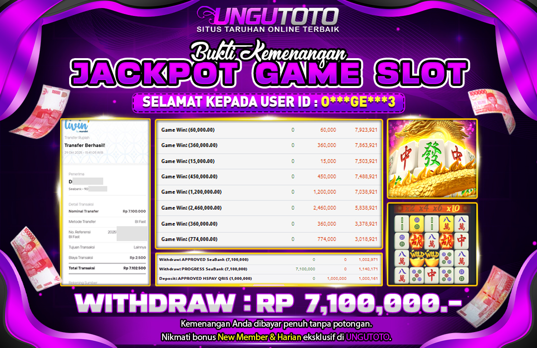 Bergabunglah dengan UNGUTOTO hanya dengan deposit minimal 5.000 rupiah. Kami menyediakan berbagai metode pembayaran seperti transfer bank, e-wallet, dan QRIS, sehingga Anda bisa melakukan transaksi dengan mudah. Proses penarikan juga sangat cepat, dengan minimal withdraw hanya 50.000 rupiah, tanpa biaya tambahan.