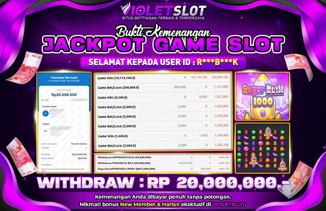 Selamat Kepada Member UNGUTOTO R*******K Telah Jackpot Di SUGAR RUSH 1000
