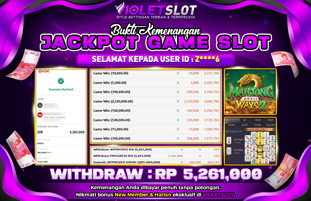 Selamat Kepada Member UNGUTOTO Z⭑�***�⭑6 Telah Jackpot Di MAHJONG WAYS 2