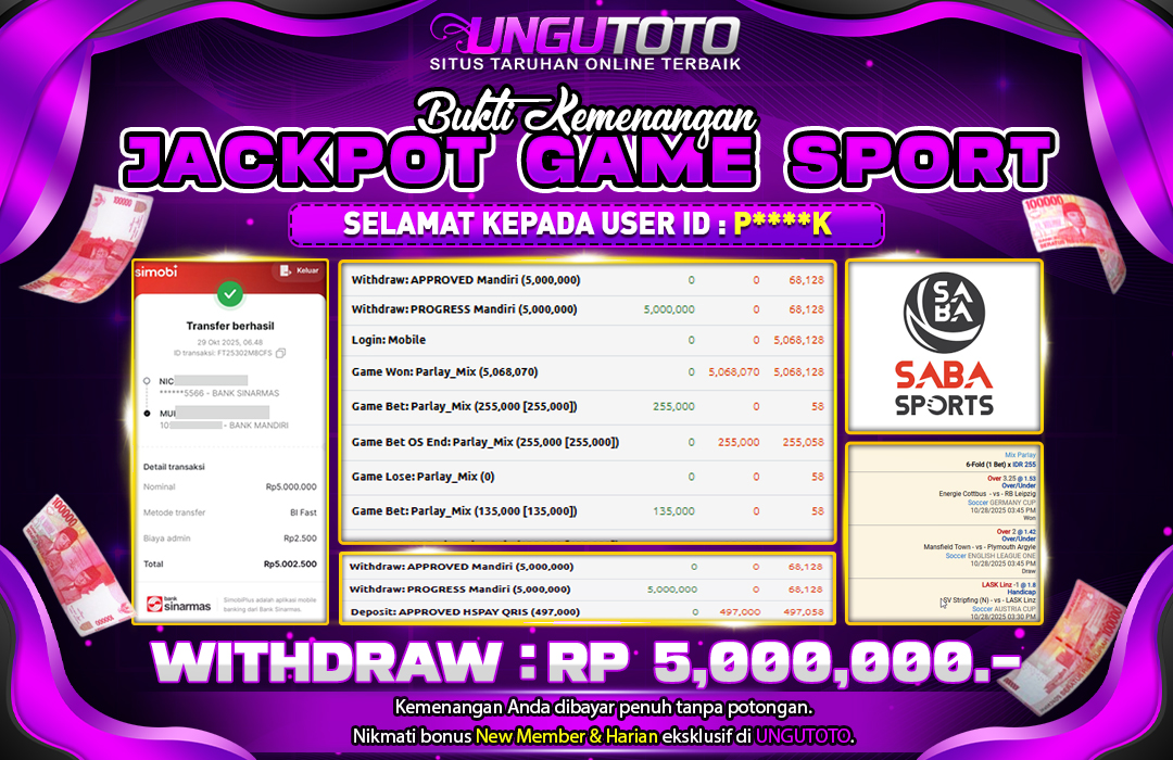 Selamat Kepada Member UNGUTOTO P⭑⭑�***�⭑⭑K Telah Jackpot Di GAME SPORT SABA