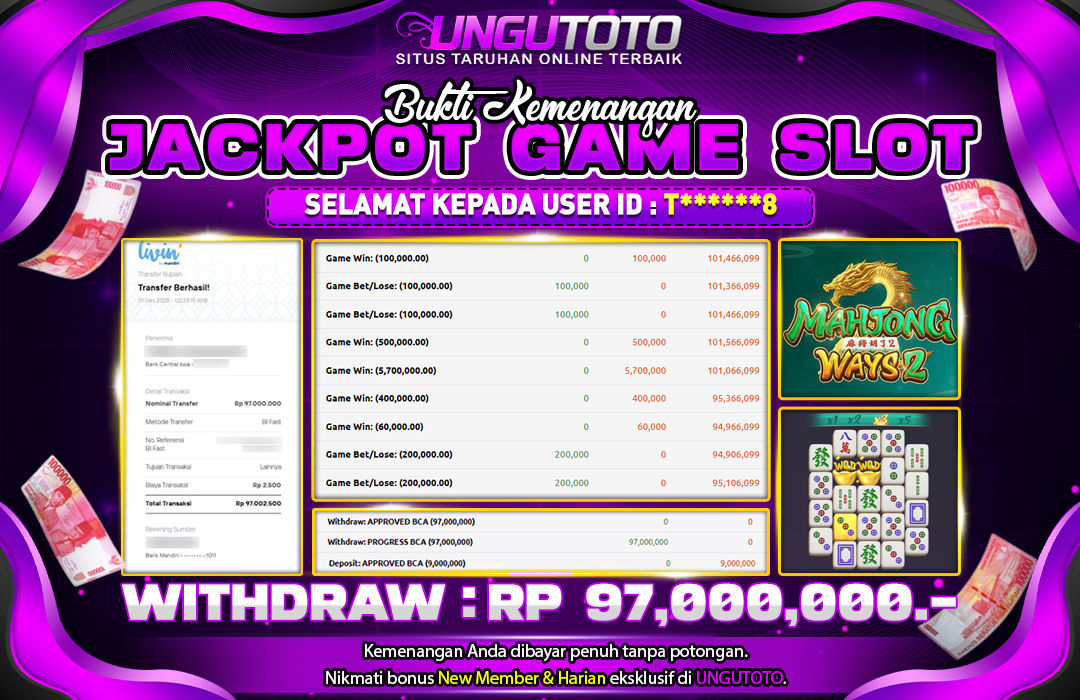 Bergabunglah dengan UNGUTOTO hanya dengan deposit minimal 5.000 rupiah. Kami menyediakan berbagai metode pembayaran seperti transfer bank, e-wallet, dan QRIS, sehingga Anda bisa melakukan transaksi dengan mudah. Proses penarikan juga sangat cepat, dengan minimal withdraw hanya 50.000 rupiah, tanpa biaya tambahan.