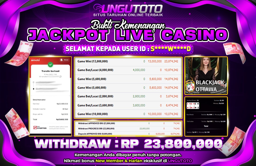 Selamat Kepada Member UNGUTOTO S*********D Telah Jackpot Di BLACKJACK OTTAWA