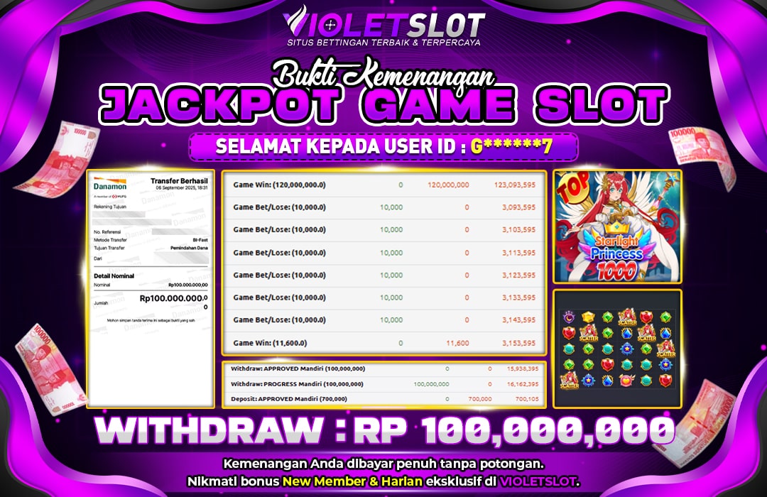Selamat Kepada Member UNGUTOTO G******7 Telah Jackpot Di STARLIGHT PRINCESS 1000