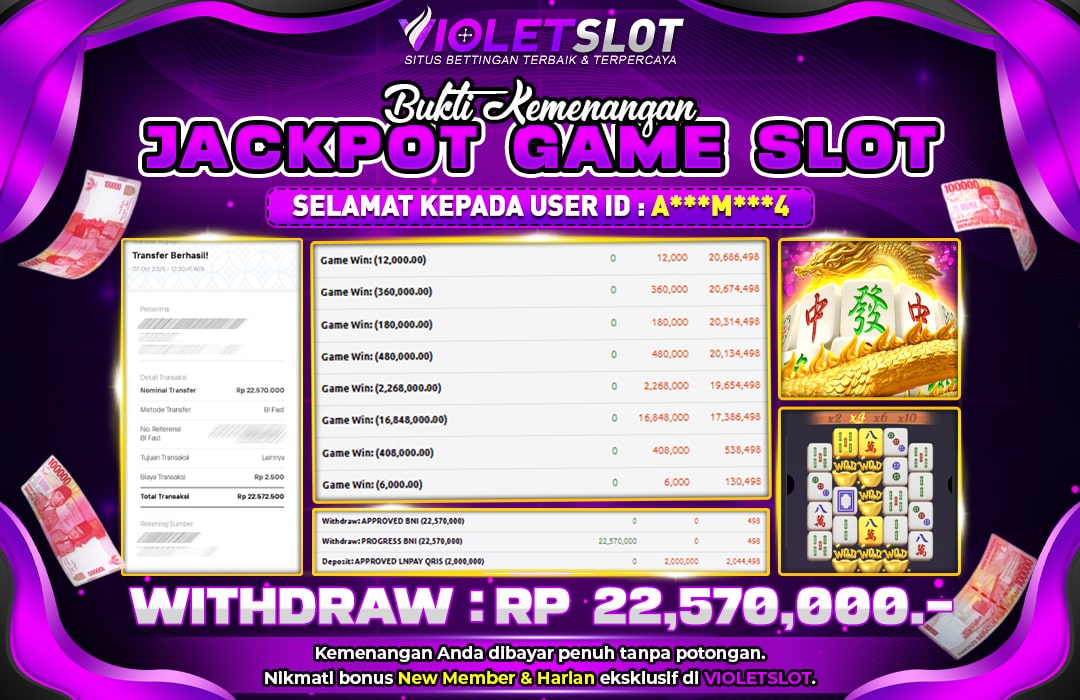 Selamat Kepada Member UNGUTOTO J******H Telah Jackpot Di MAHJONG WAYS