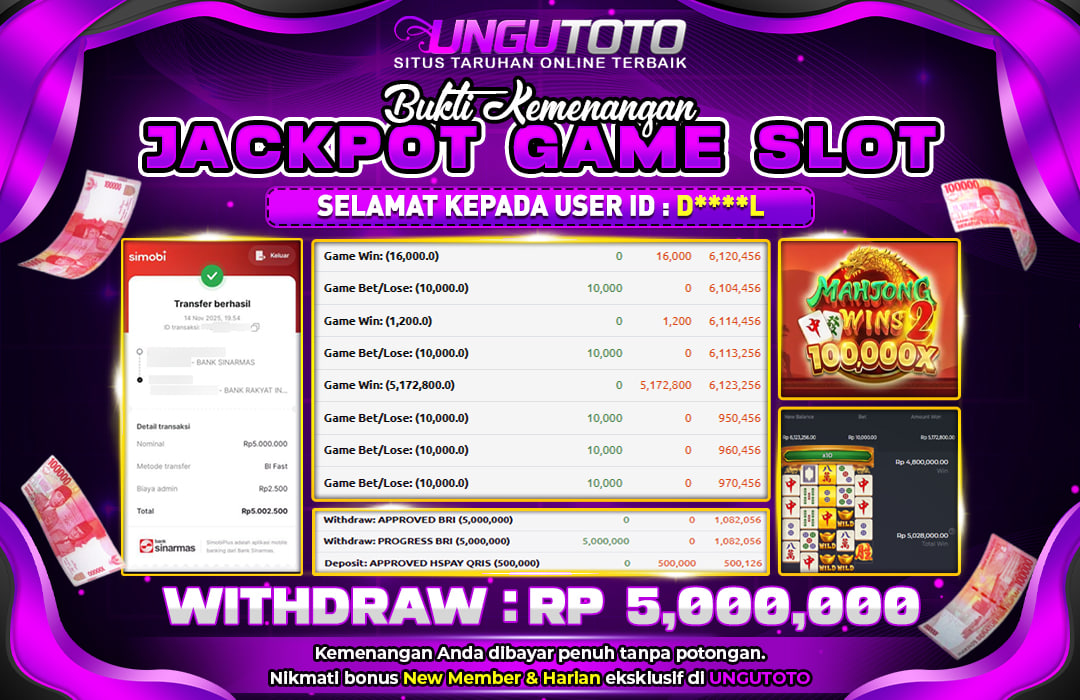 Bergabunglah dengan UNGUTOTO hanya dengan deposit minimal 5.000 rupiah. Kami menyediakan berbagai metode pembayaran seperti transfer bank, e-wallet, dan QRIS, sehingga Anda bisa melakukan transaksi dengan mudah. Proses penarikan juga sangat cepat, dengan minimal withdraw hanya 50.000 rupiah, tanpa biaya tambahan.