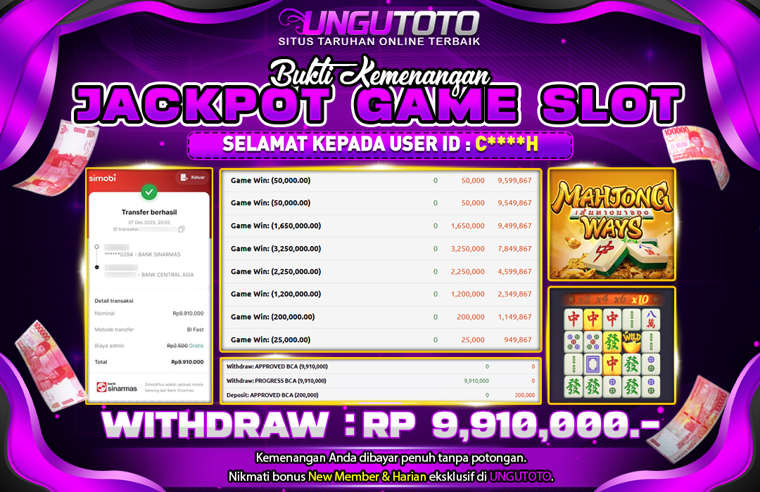 Selamat Kepada Member UNGUTOTO C**** Telah Jackpot Di MAHJONG WAYS