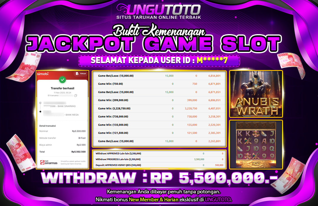 Selamat Kepada Member UNGUTOTO M⭑⭑�***�⭑⭑7 Telah Jackpot Di ANUBIS WRATH