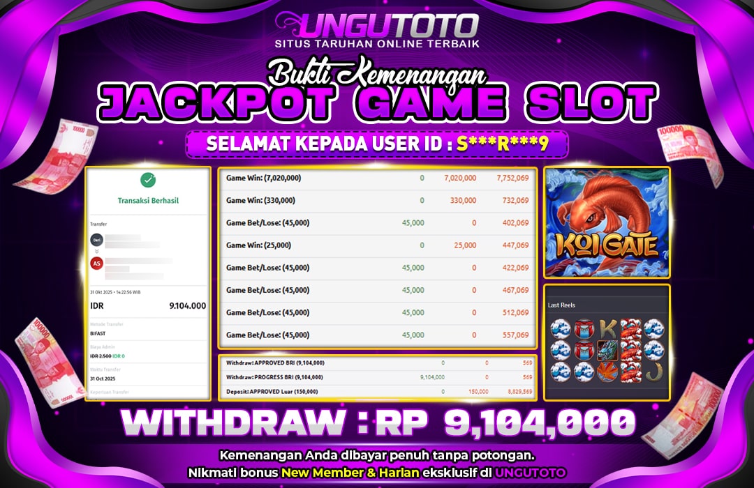 Selamat Kepada Member UNGUTOTO S*******9 Telah Jackpot Di KOI GATE