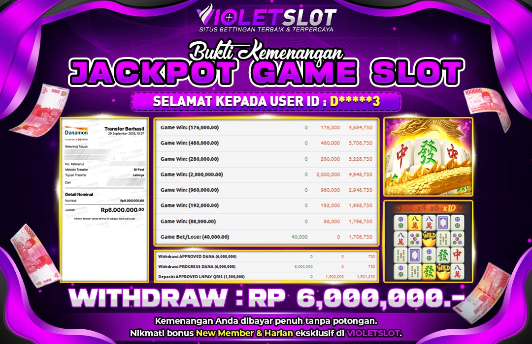 Selamat Kepada Member UNGUTOTO D*****3 Telah Jackpot Di MAHJONG WAYS