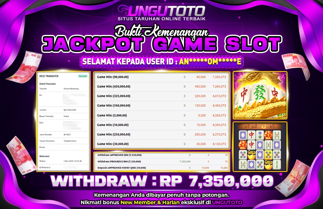 Bergabunglah dengan UNGUTOTO hanya dengan deposit minimal 5.000 rupiah. Kami menyediakan berbagai metode pembayaran seperti transfer bank, e-wallet, dan QRIS, sehingga Anda bisa melakukan transaksi dengan mudah. Proses penarikan juga sangat cepat, dengan minimal withdraw hanya 50.000 rupiah, tanpa biaya tambahan.