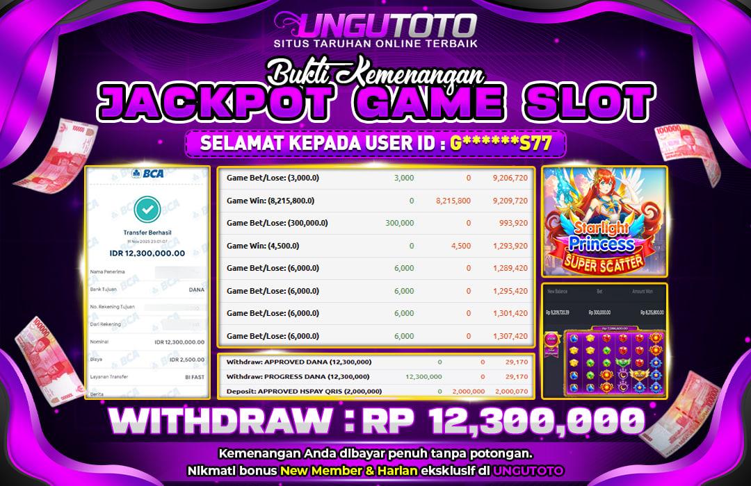 Selamat Kepada Member UNGUTOTO G⭑⭑***⭑S77 Telah Jackpot Di STARLIGHT PRINCESS SUPER SCATTER
