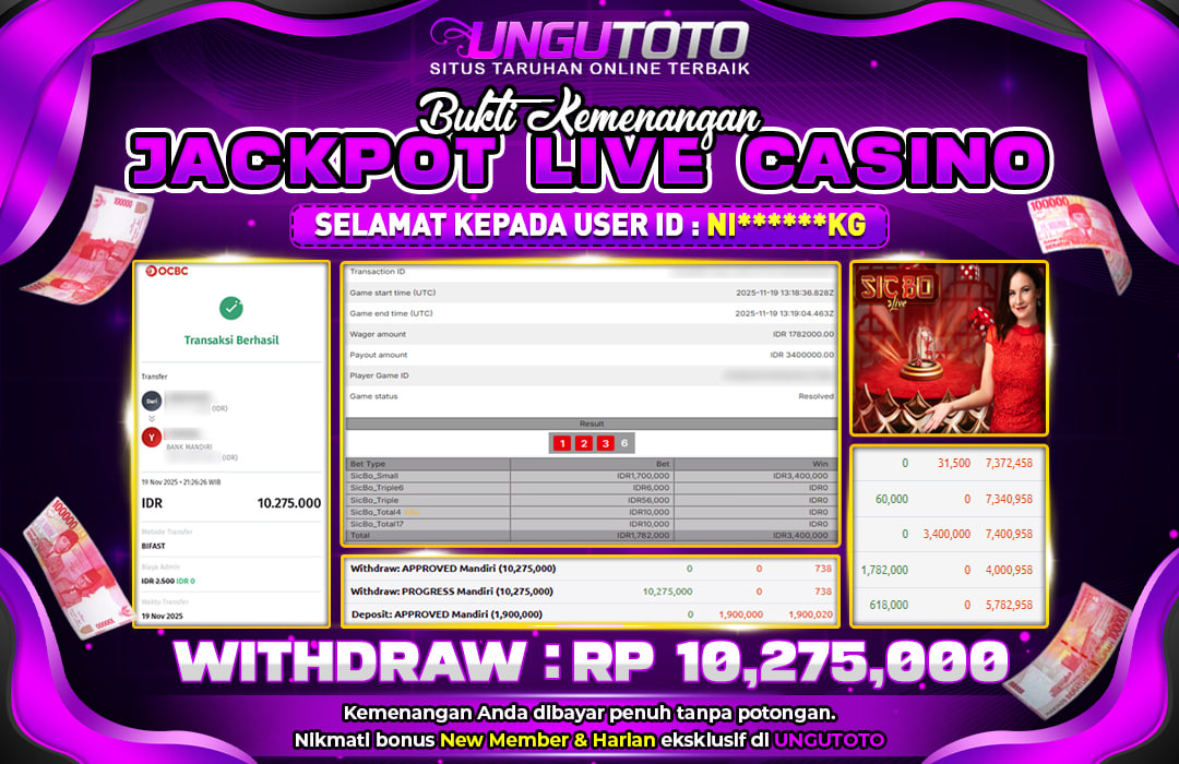 Bergabunglah dengan UNGUTOTO hanya dengan deposit minimal 5.000 rupiah. Kami menyediakan berbagai metode pembayaran seperti transfer bank, e-wallet, dan QRIS, sehingga Anda bisa melakukan transaksi dengan mudah. Proses penarikan juga sangat cepat, dengan minimal withdraw hanya 50.000 rupiah, tanpa biaya tambahan.