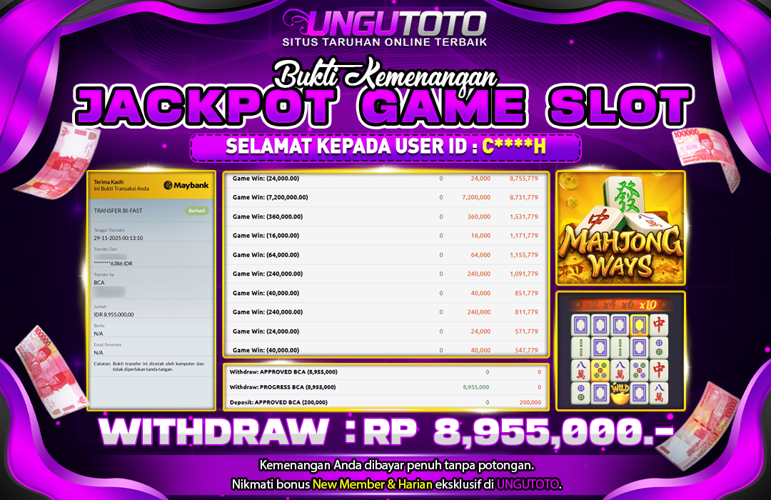 Selamat Kepada Member UNGUTOTO C****H Telah Jackpot Di MAHJONG WAYS