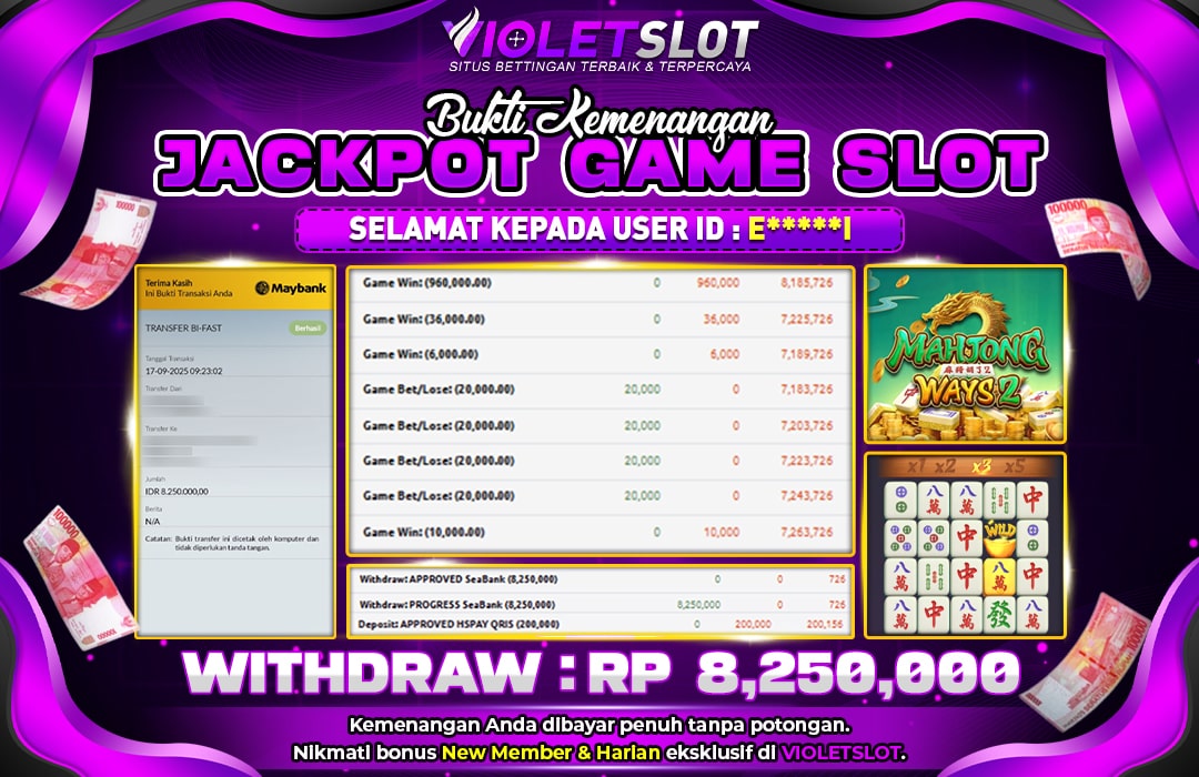 Selamat Kepada Member UNGUTOTO E*****I Telah Jackpot Di MAHJONG WAYS 2