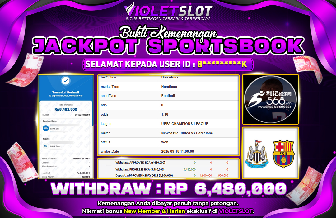 Selamat Kepada Member UNGUTOTO B*********K Telah Jackpot Di SPORTSBOOK