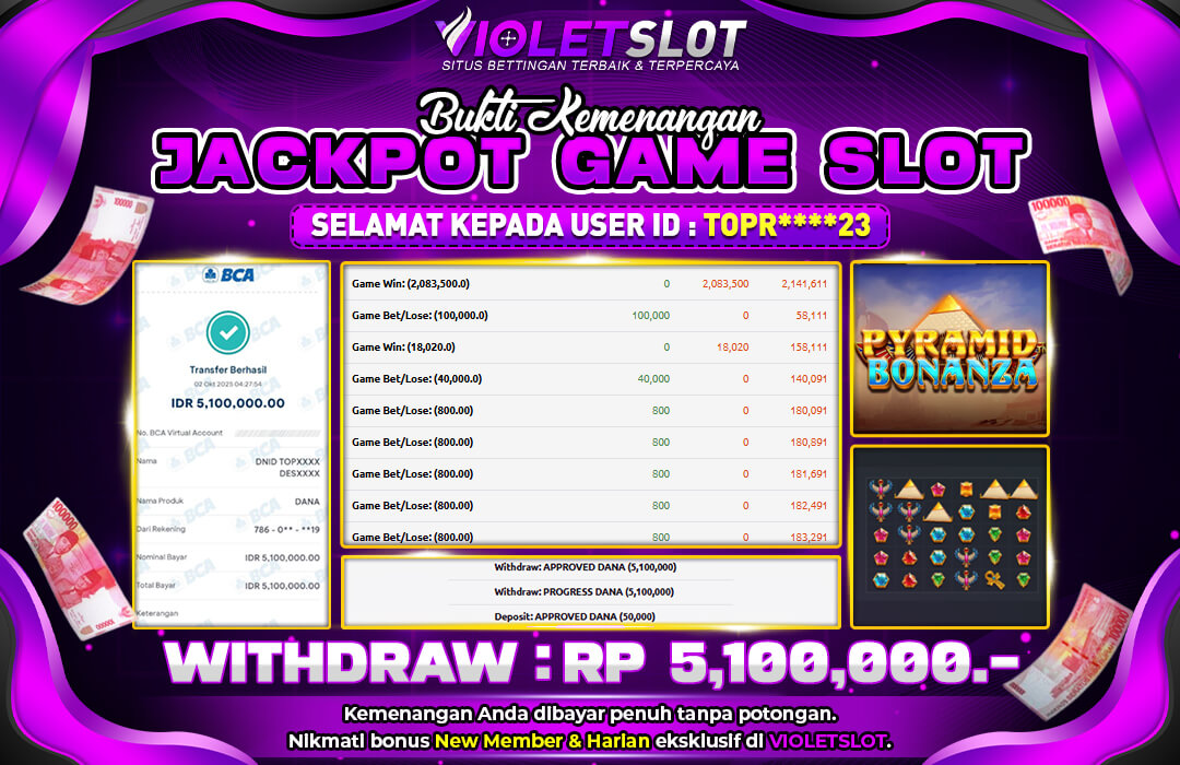 Selamat Kepada Member UNGUTOTO TOPR*****23 Telah Jackpot Di PYRAMID BONANZA