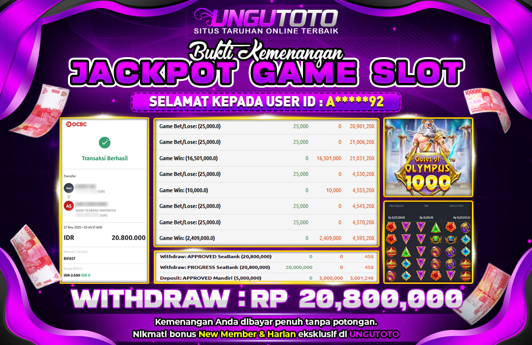 Ya cuma di UNGUTOTO, tempat paling aman dan terpercaya buat para pecinta GATES OF OLYMPUS 1000. Mulai dari layanan responsif, sistem yang fair, sampai pencairan yang tuntas tanpa drama.