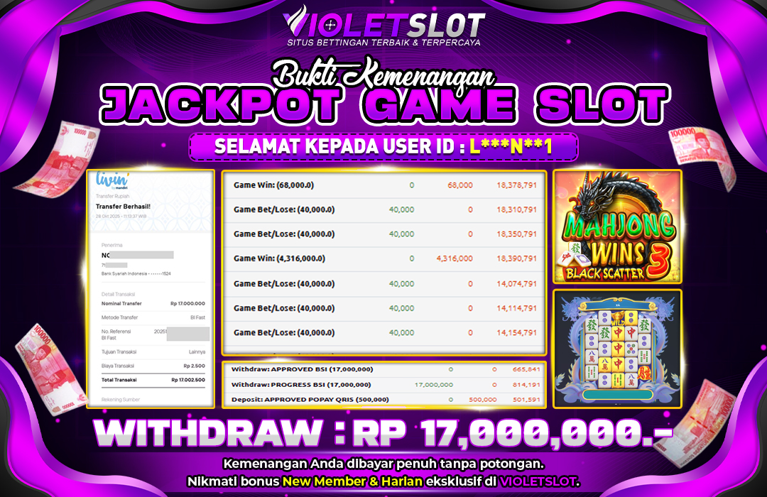 🎉 Selamat untuk USER ID: B***M yang sukses membawa pulang Rp.Rp.16.000.000 dari permainan MAHJONG WAYS ! 💸
