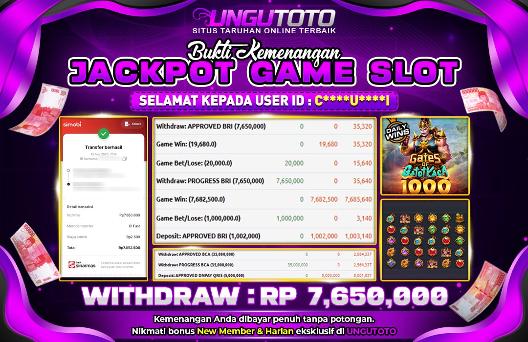 Bergabunglah dengan UNGUTOTO hanya dengan deposit minimal 5.000 rupiah. Kami menyediakan berbagai metode pembayaran seperti transfer bank, e-wallet, dan QRIS, sehingga Anda bisa melakukan transaksi dengan mudah. Proses penarikan juga sangat cepat, dengan minimal withdraw hanya 50.000 rupiah, tanpa biaya tambahan.