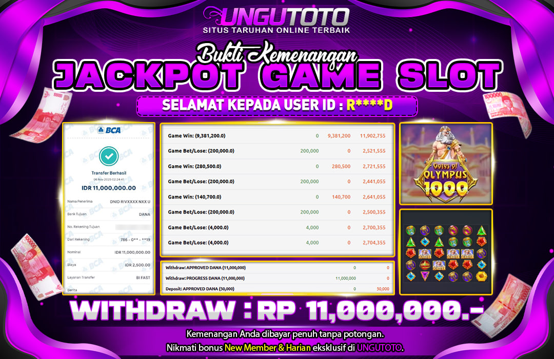 Bergabunglah dengan UNGUTOTO hanya dengan deposit minimal 5.000 rupiah. Kami menyediakan berbagai metode pembayaran seperti transfer bank, e-wallet, dan QRIS, sehingga Anda bisa melakukan transaksi dengan mudah. Proses penarikan juga sangat cepat, dengan minimal withdraw hanya 50.000 rupiah, tanpa biaya tambahan.