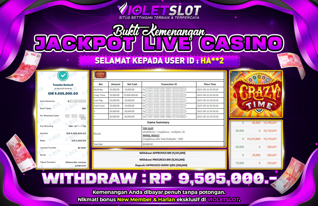 Selamat Kepada Member UNGUTOTO HA*** Telah Jackpot Di CRAZY TIME