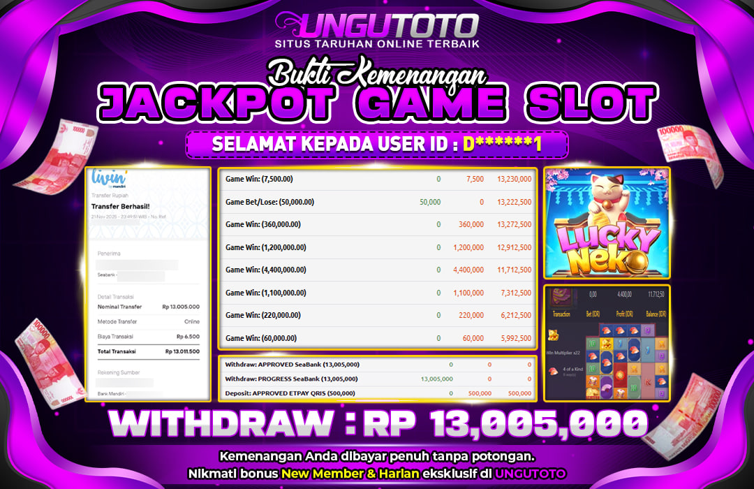 Bergabunglah dengan UNGUTOTO hanya dengan deposit minimal 5.000 rupiah. Kami menyediakan berbagai metode pembayaran seperti transfer bank, e-wallet, dan QRIS, sehingga Anda bisa melakukan transaksi dengan mudah. Proses penarikan juga sangat cepat, dengan minimal withdraw hanya 50.000 rupiah, tanpa biaya tambahan.