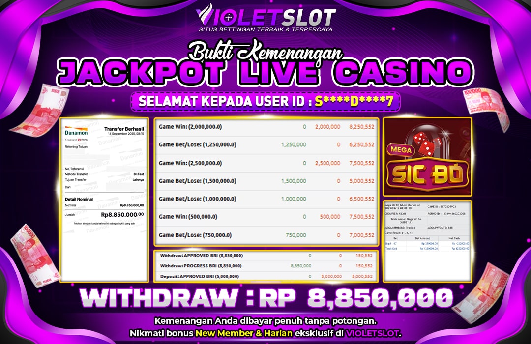 Selamat Kepada Member UNGUTOTO S*********7 Telah Jackpot Di MEGA SIC BO
