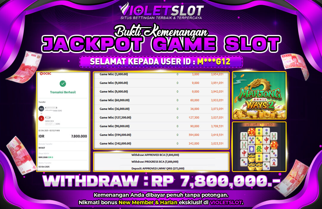 Selamat Kepada Member UNGUTOTO M*****2 Telah Jackpot Di MAHJONG WAYS 2