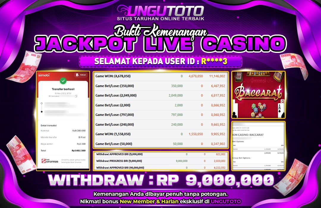 Selamat Kepada Member UNGUTOTO R****3 Telah Jackpot Di BACARRAT