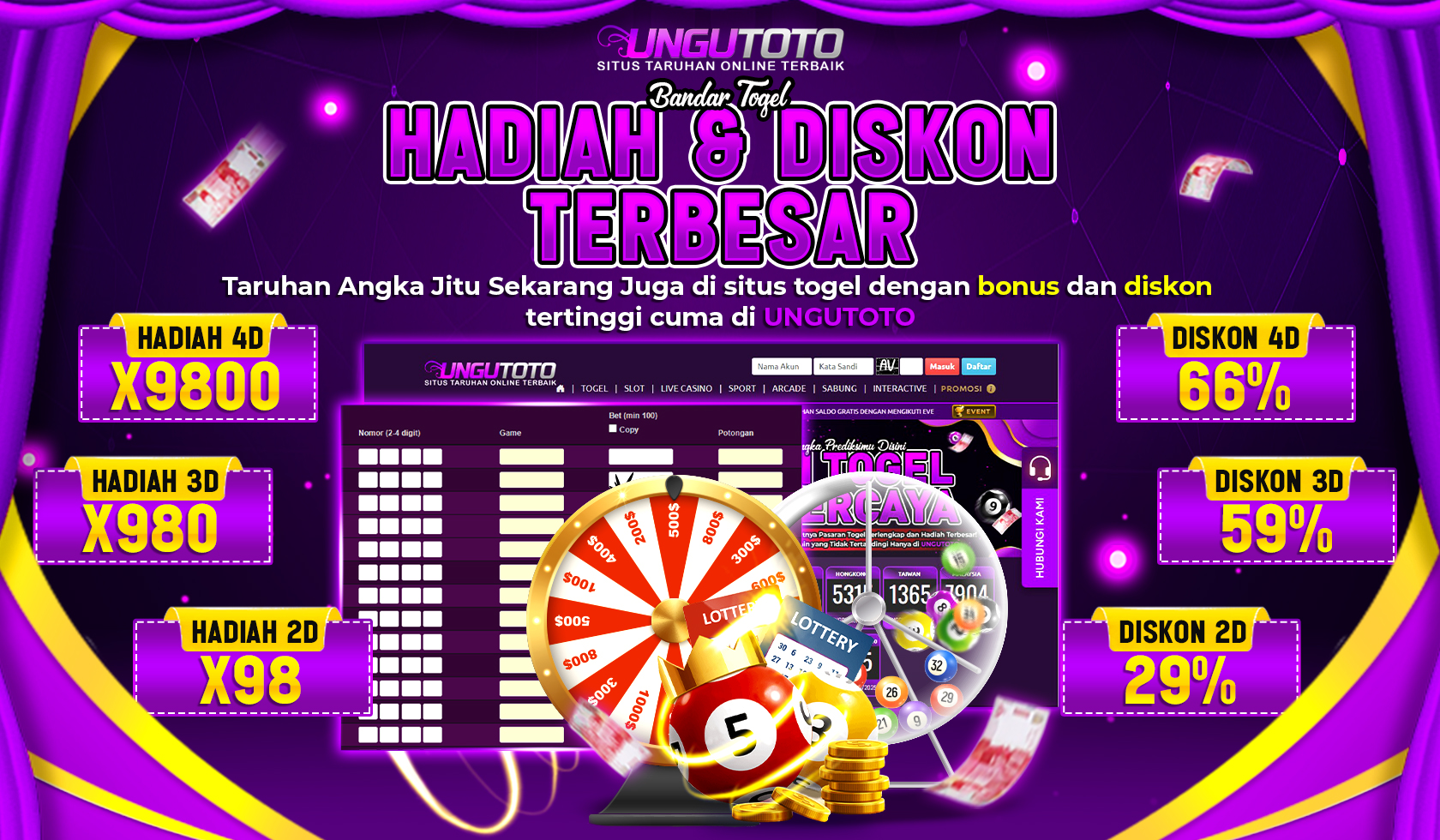 UNGUTOTO adalah pilihan tepat bagi Anda yang mencari situs permainan online lengkap dengan berbagai pilihan permainan seru dan menguntungkan. Dengan 23 pasaran togel, game slot RTP tinggi, serta sportsbook dan live casino yang menawarkan pengalaman premium, Anda pasti akan menikmati setiap momen bermain. Daftar sekarang juga dan buktikan sendiri peluang besar untuk meraih keuntungan di UNGUTOTO!